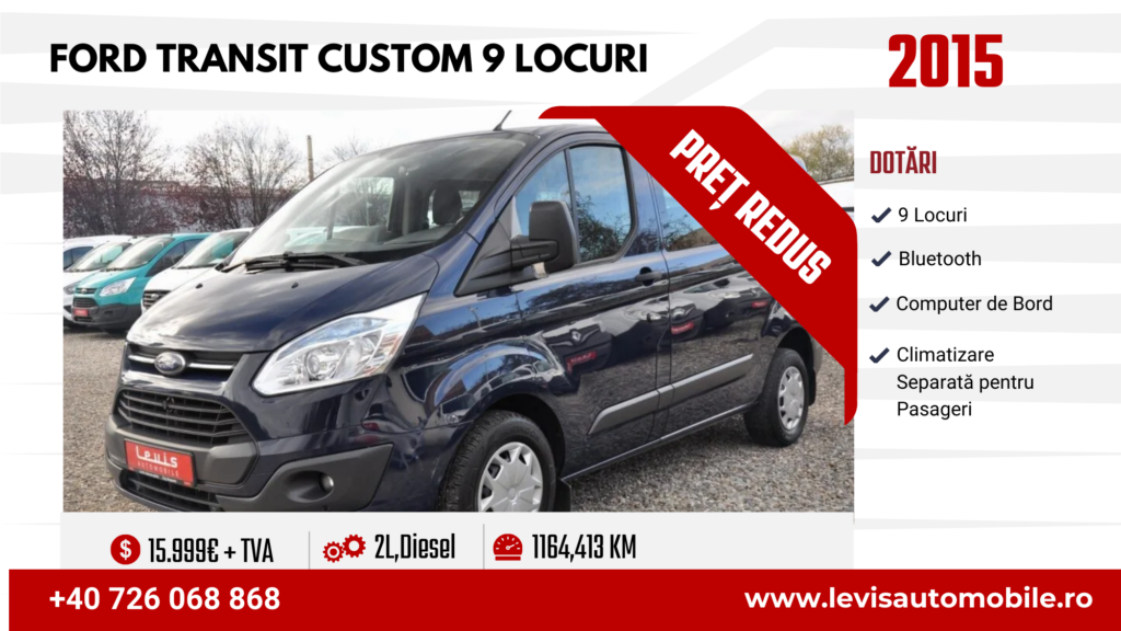 **** Echipa Levis Automobile depune eforturile necesare pentru ca informaţiile oferite în anunţurile postate să fie reale, corecte şi actualizate. Pot exista anumite erori/greșeli gramaticale/omisiuni în detaliile anunțurilor. Levis Automobile nu îşi asumă răspunderea pentru eventualele erori/greșeli gramaticale/omisiuni pe care acestea le-ar putea conţine. Va rugăm să solicitați consilierului de vânzari confirmarea că datele trecute în anunțul referitor la Ford Transit Custom Kombi sunt reale, corecte și actualizate. De asemenea, la vizionarea mașinii în parcul nostru, verificați ca datele menționate în anunț să corespundă, în realitate, cu datele mașinii.